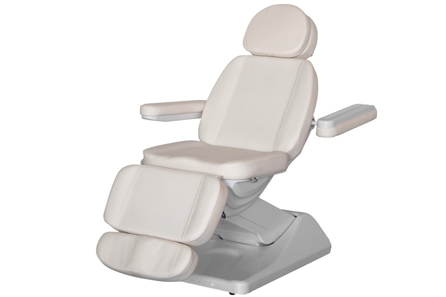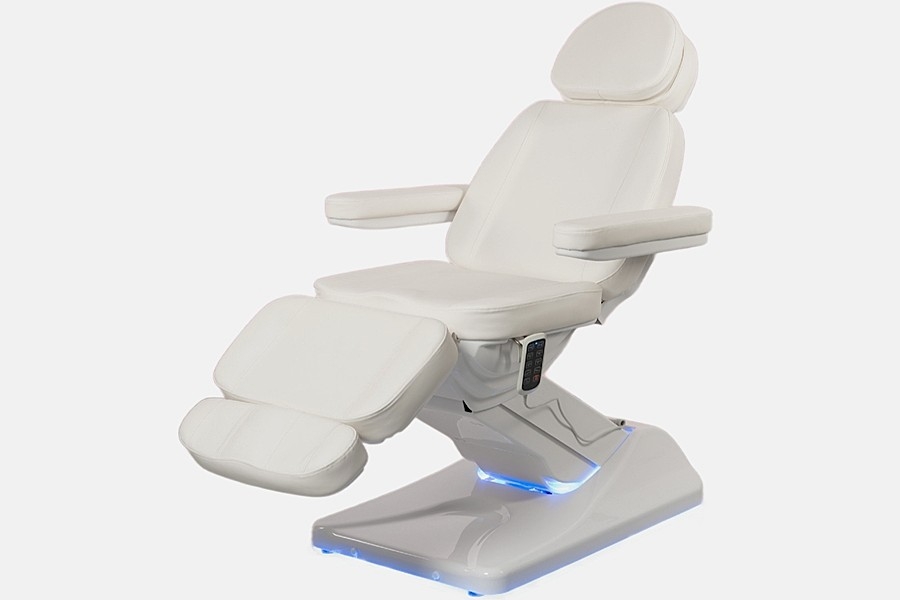 Современное косметологическое кресло с четырьмя электромоторами на пульте управления.