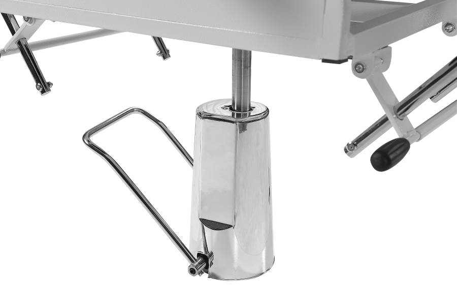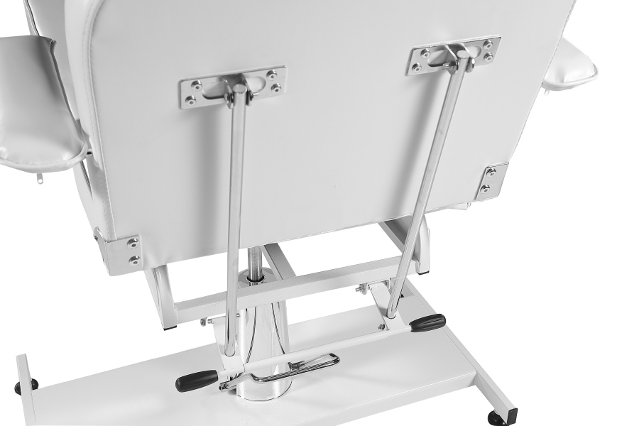 Данная модель регулируется по высоте при помощи гидравлического подъемника. Спинная и ножная часть регулируются с помощью рычажного механизма.