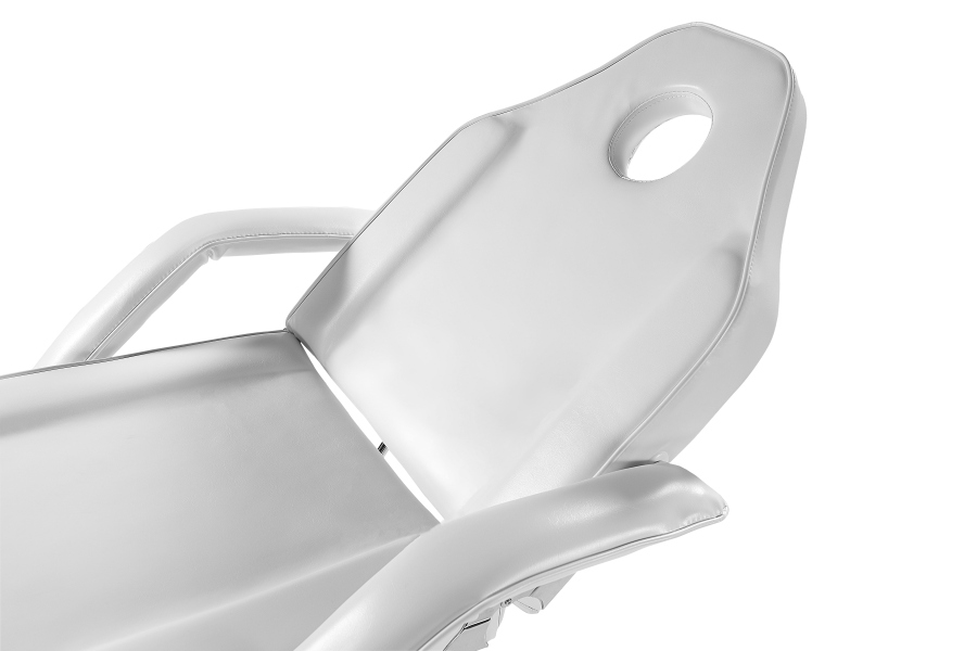 Косметологическое кресло гидравлическое MK 05 полностью раскладывается в лежачее положение. Подголовник оснащен отверстием для лица, которое, в зависимости от процедуры, закрывается подушкой с заглушкой (входит в комплект).