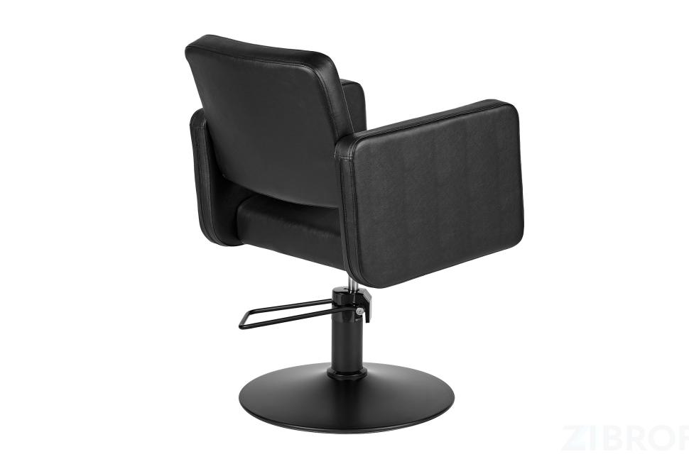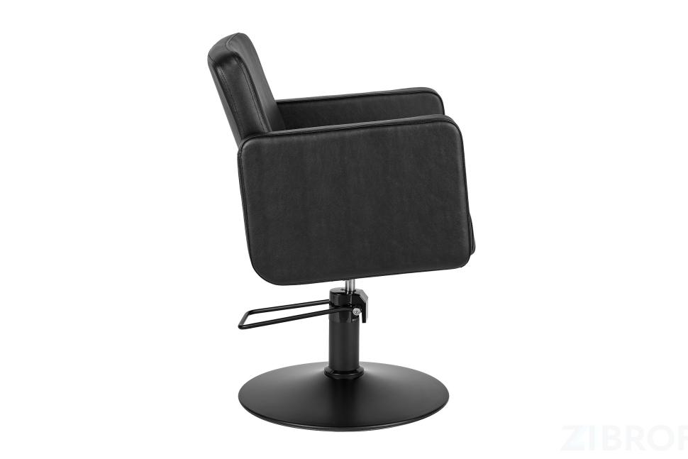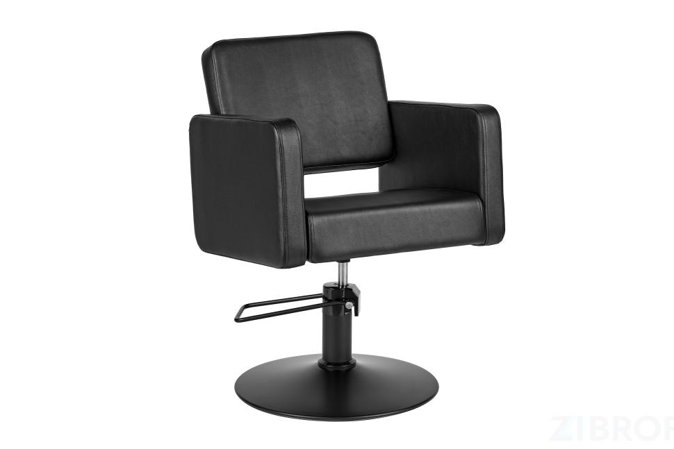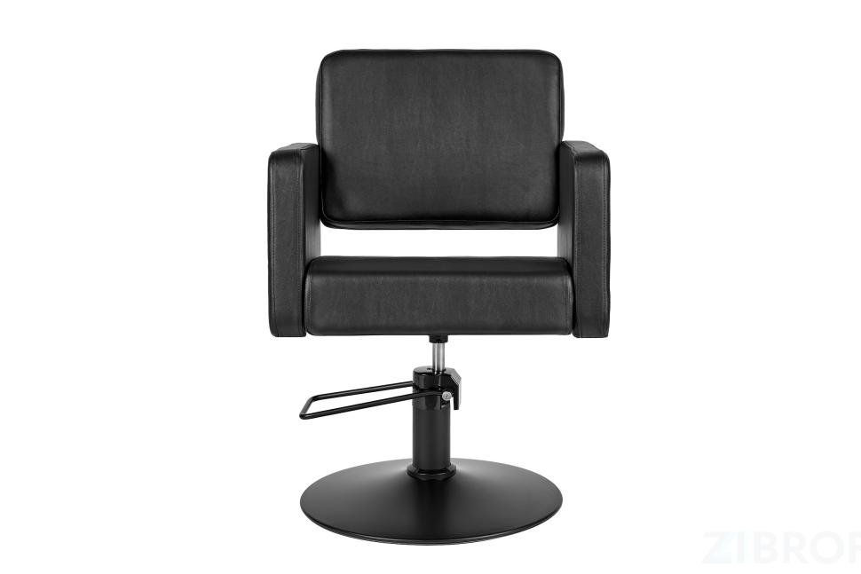 Комфортное и красивое кресло для салона красоты, оснащенное гидравлическим подъемником. Сиденье кресла изготовлено из плотного пенополиуретана на металлическом каркасе, и обтянуто прочным кожезаменителем черного цвета.
