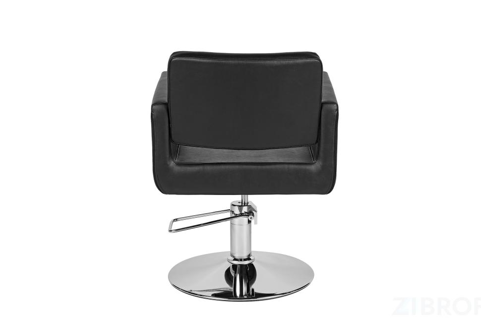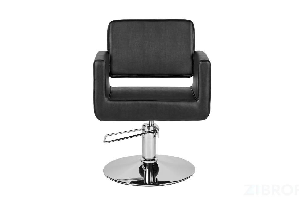 Изящное кресло для салона красоты, оборудованное гидравлическим подъемником, на хромированном основании в форме круга.