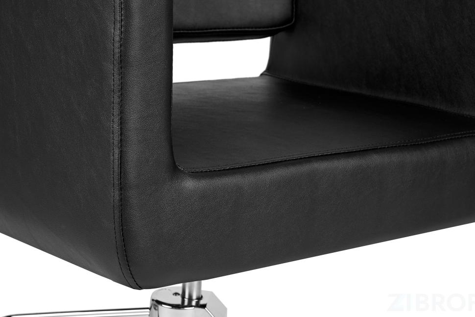 Сиденье кресла изготовлено из плотного пенополиуретана на металлическом каркасе, и обтянуто прочным кожезаменителем черного цвета.