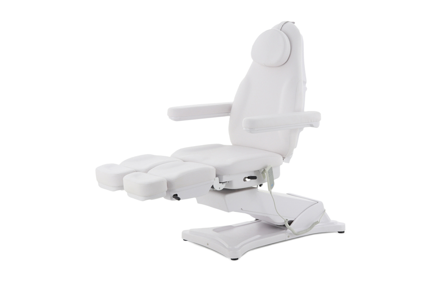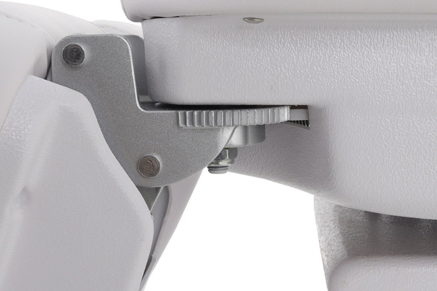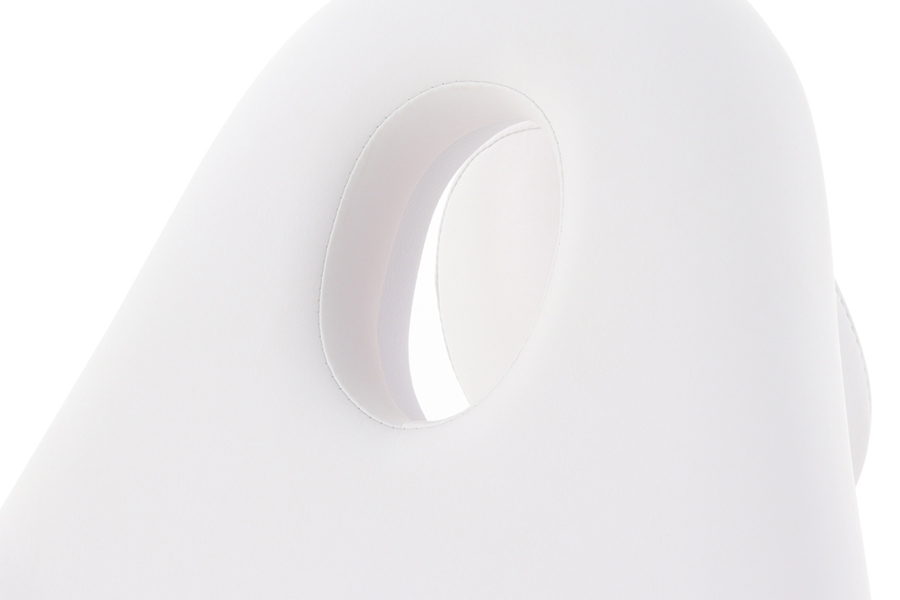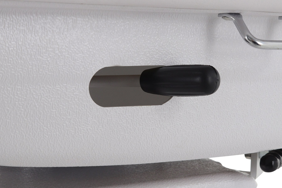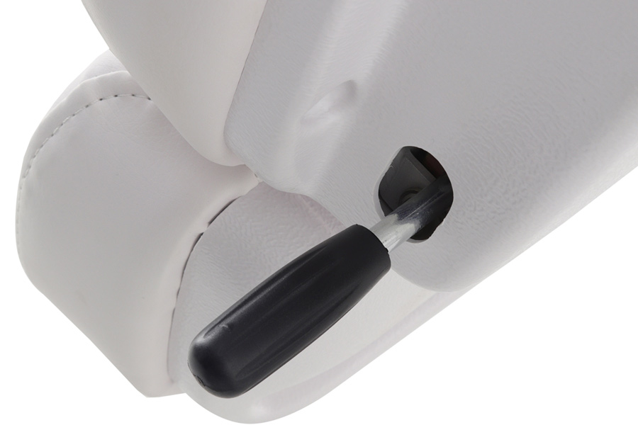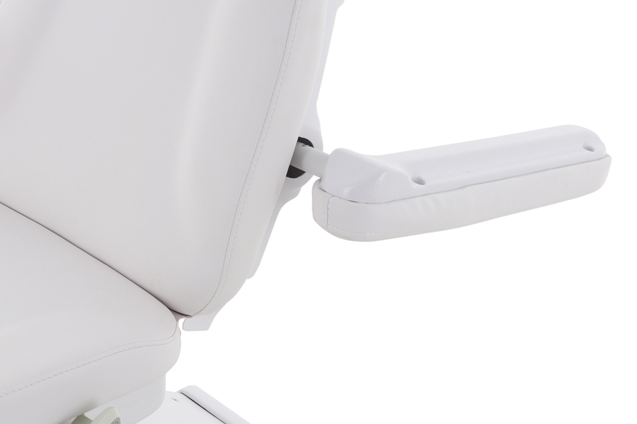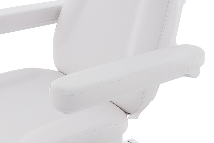 Материал каркаса педикюрного кресла ММКП-2 КО-190DP – стальной сплав, все механические узлы и соединения закрыты пластиковым декоративным кожухом белого цвета.